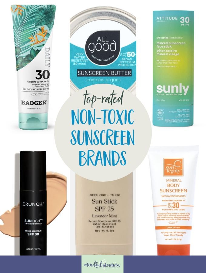 And I’ve done the research and testing to come up with a great list of non toxic sunscreens, ranging from mineral sunscreen lotions and sticks, clean sunscreens for your face, and the safest sunscreen sprays – so that you can find the healthy sunscreen that works best for YOU!